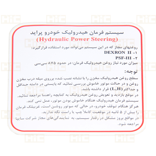 ارم برچسب سیستم فرمان هیدرولیک پراید*
